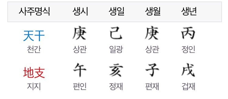 기둥천간지지| 연주 | 경(庚) | 오(午) |