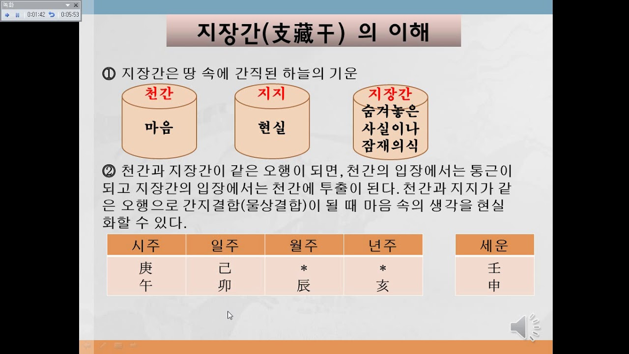 지장간은 지지 속에 숨겨진 천간으로, 각 지지가 단순한 하나의 에너지가 아니라 여러 에너지가 복합적으로 작용하는 것을 의미합니다. 이를 통해 사주를 해석할 때, 각 지지의 복잡한 성질을 이해하고 더 정확한 분석을 할 수 있습니다.