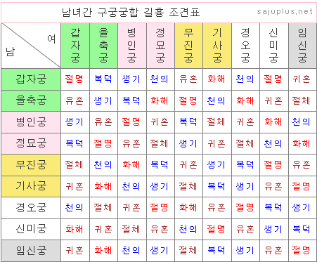 - 수극화: 壬(임), 癸(계)는 丙(병), 丁(정)과 상극 관계