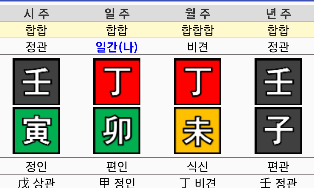 즉 태어난 날의 천간을 중심으로 사주를 분석하는 것이 일반적입니다.