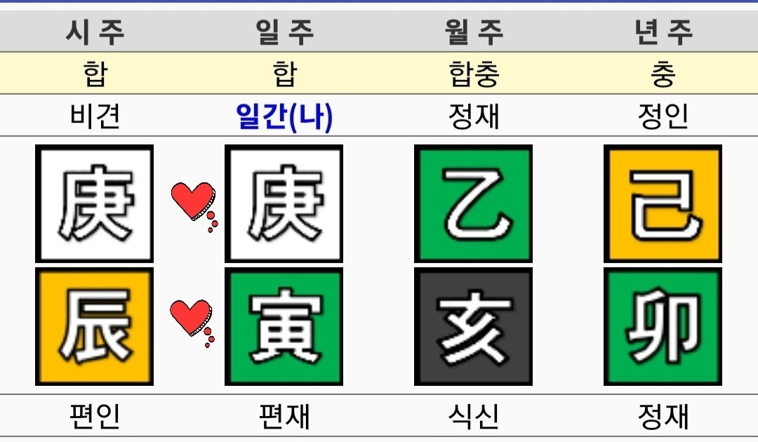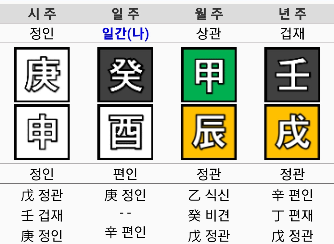 즉 태어난 날의 천간을 중심으로 사주를 분석하는 것이 일반적입니다.