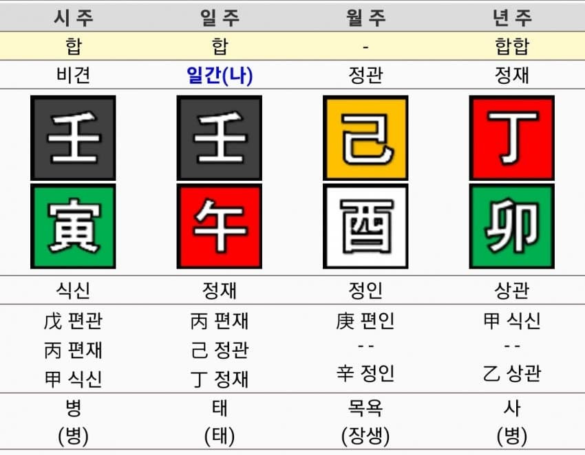 위의 예시 사주를 토대로 풀이를 진행해 보겠습니다.