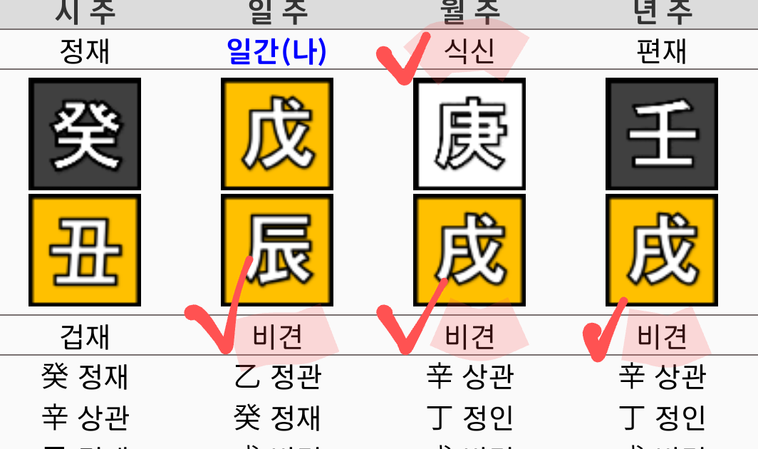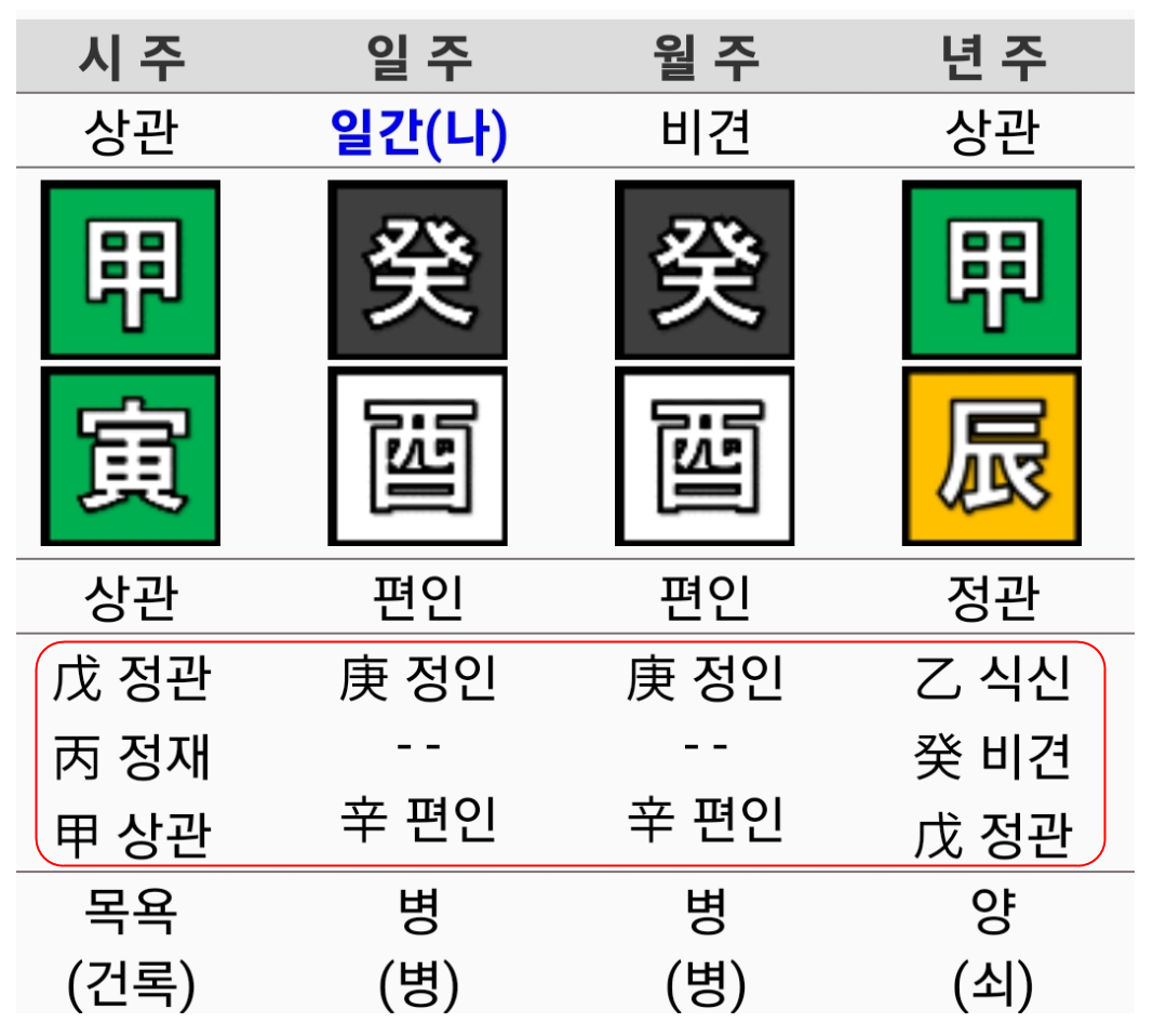 위의 예시 사주를 토대로 풀이를 진행해 보겠습니다.