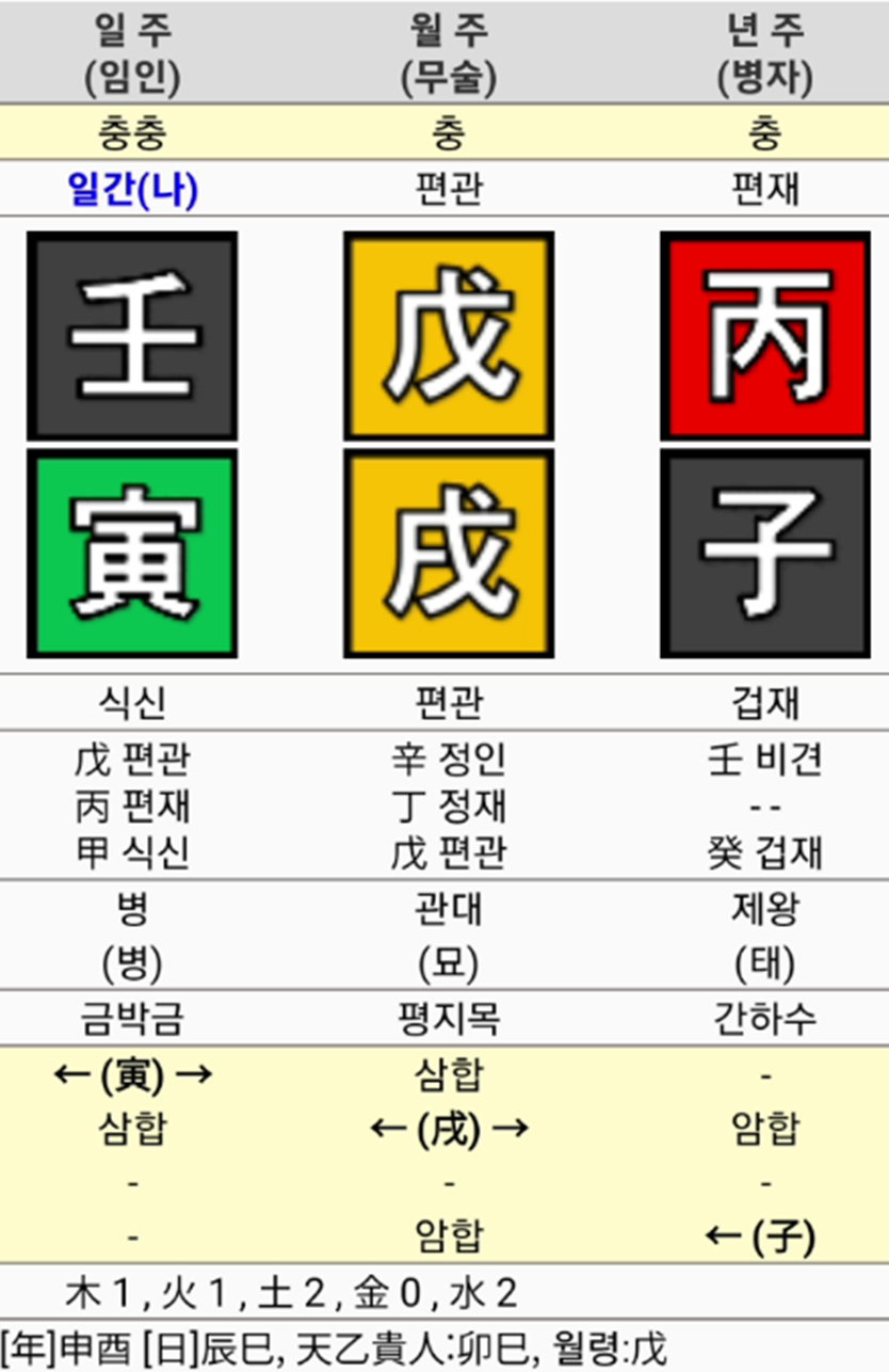 | 천간 | 임(壬) | 병(丙) | 무(戊) | 경(庚) |