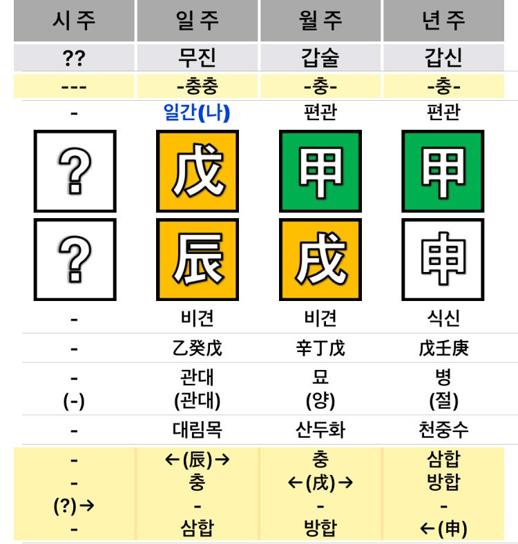 | 천간 | 무(戊) | 갑(甲) | 기(己) | 을(乙) |